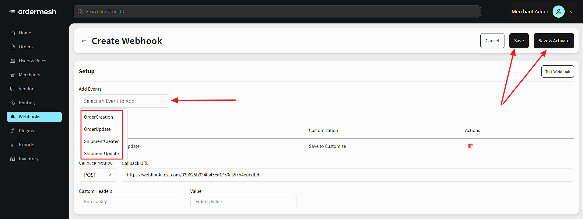 In case you wish to edit your Webhook configuration at a later time, you can just hit Save or simply Save & Activate right away if no further editing is needed.